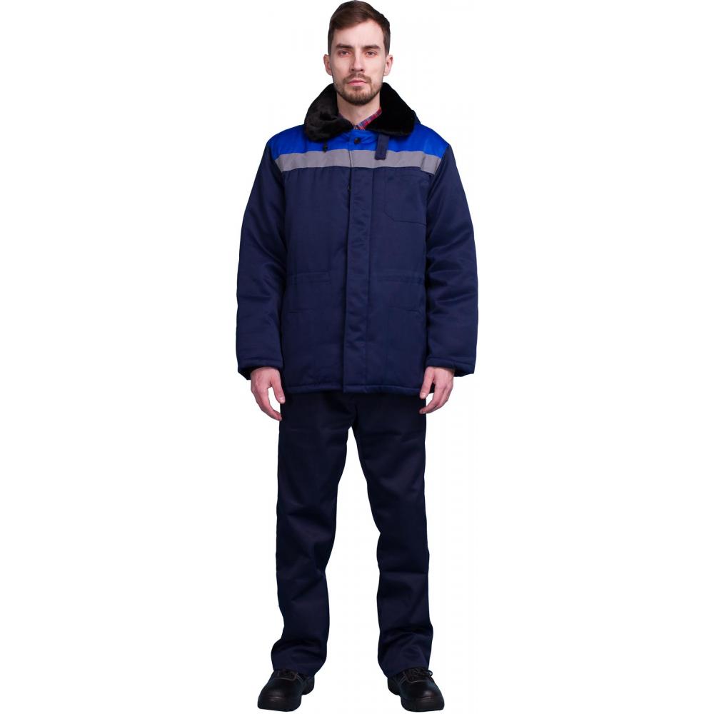 Куртка утепленная "Бригадир" создана для рабочих специальностей. Модель оснащена застежкой на пуговицах с двойной ветрозащитной планкой. Имеются широкие светоотражающие полосы по линии спины и груди. Воротник отложной меховой.