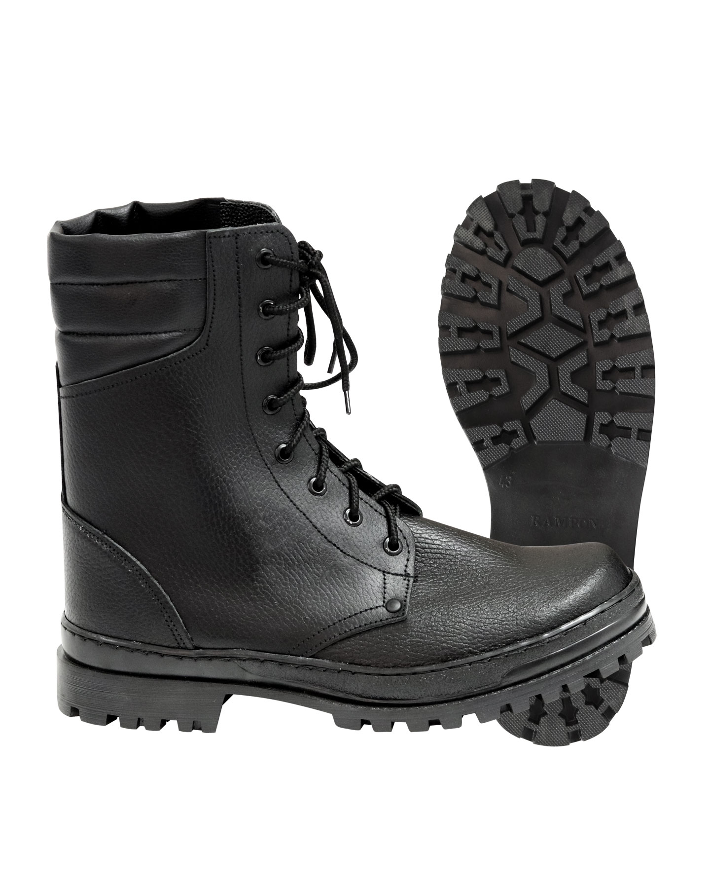 Ботинки хромовые с завышенными берцами, увеличенный мягкий кант и глухой клапан, усиленный подносок и жесткий задник из термопластического материала.