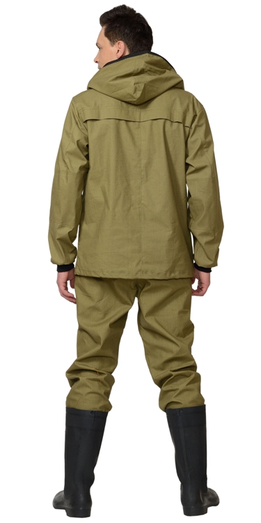 Куртка с притачным капюшоном с противомоскитной сеткой и накладным нагрудным карманом, в который при необходимости можно спрятать противомоскитную сетку. Рукава с трикотажной манжетой, ширина куртки внизу регулируется.Брюки с цельнокроеным поясом, стянутым эластичной лентой, с 4-мя шлёвками, с наколенниками, с накладным карманом с клапаном, застёгивающимся на ленту "контакт", низ брюк с трикотажными манжетами.