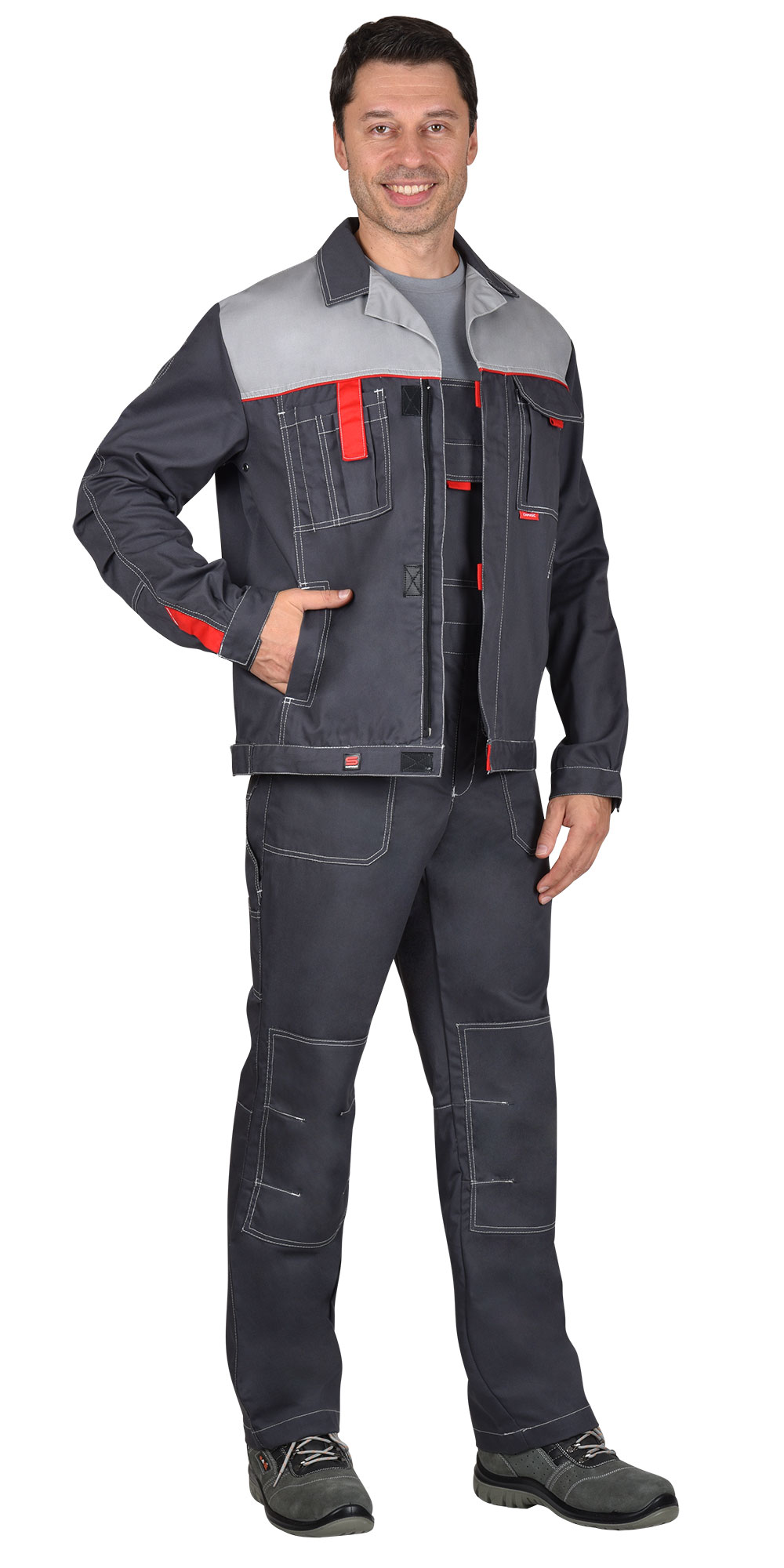 Костюм рабочий мужской Фаворит-Люкс (куртка, полукомбинезон), темно-серый