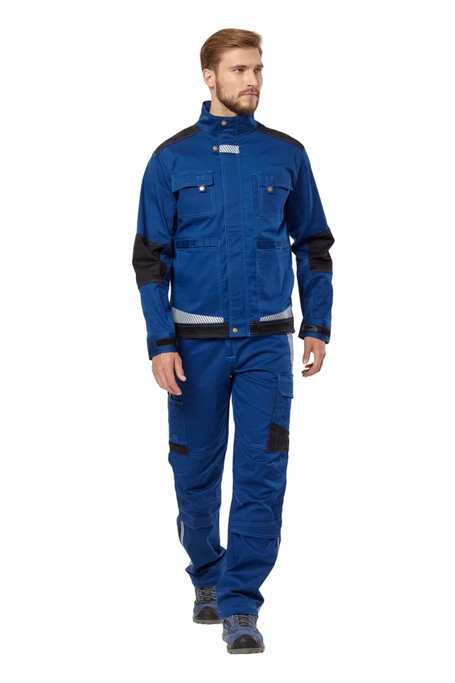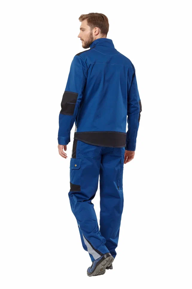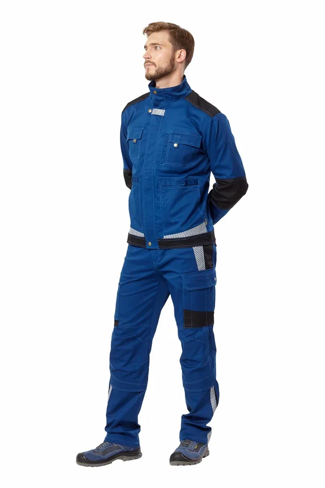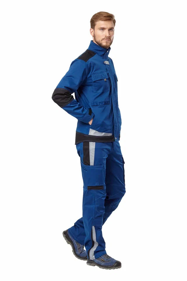 Куртка летняя и демисезонная современного дизайна из смесовой ткани синего цвета, для защиты от общих производственных загрязнений.