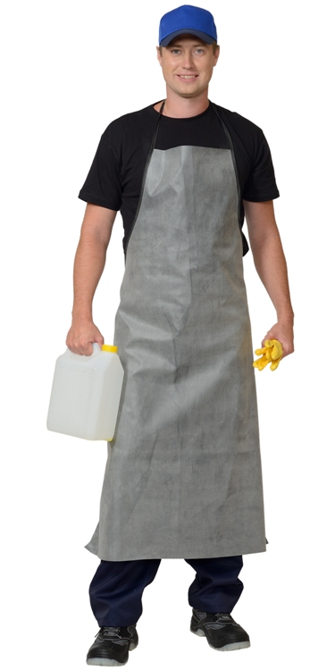 Большой фартук КЩС тип Б серого цвета – спецодежда для защита от воды, щелочей, кислот и других растворов. Отличается высокой универсальностью, состоит из высокопрочного и водоотталкивающего материала. Хорошо сидит по фигуре и не стесняет движений.