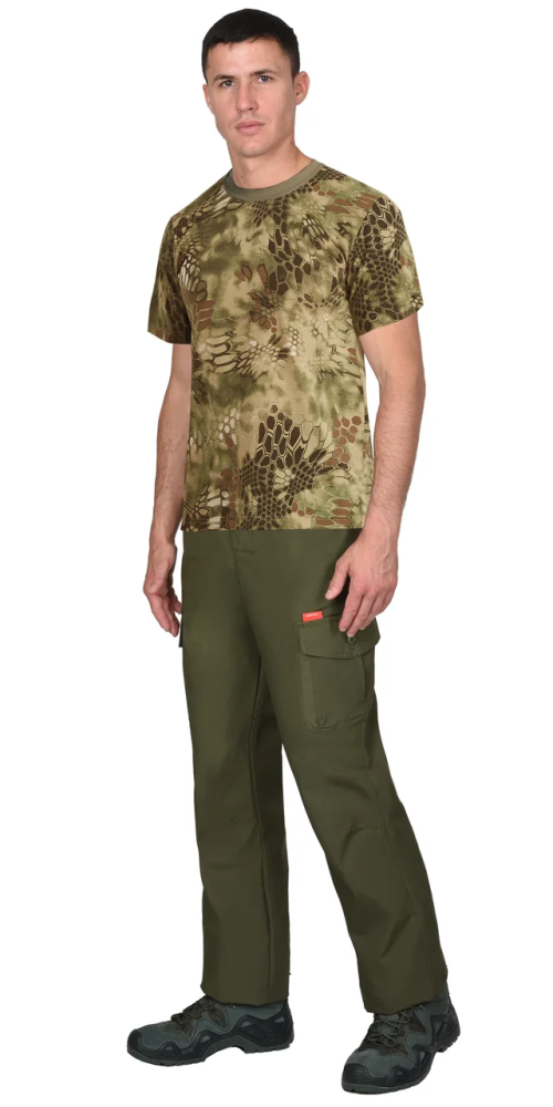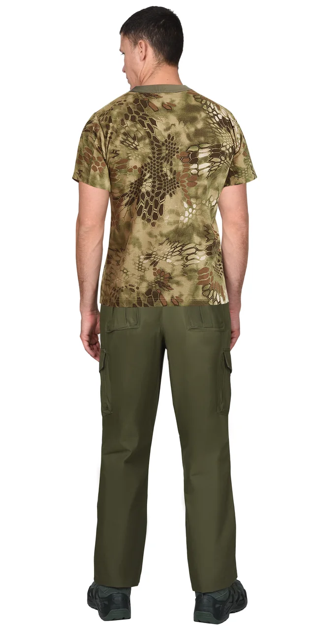 Футболка имеет прямой свободный силуэт для максимальной свободы движений. Короткие рукава и круглый вырез горловины с эластичной "Рибаной" обеспечивают комфортную посадку. Расцветка КМФ Питон зелёный — современный камуфляжный рисунок с отличной маскировкой в лесной зоне.