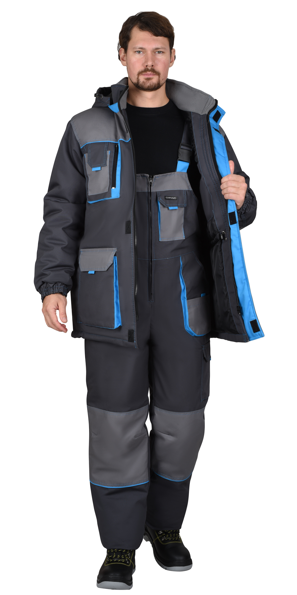 Костюм рабочий мужской зимний Двин (куртка, полукомбинезон), серый