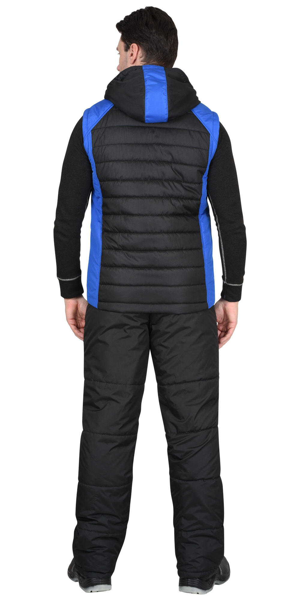 Жилет утепленный с капюшоном Урбан, черный, синий
