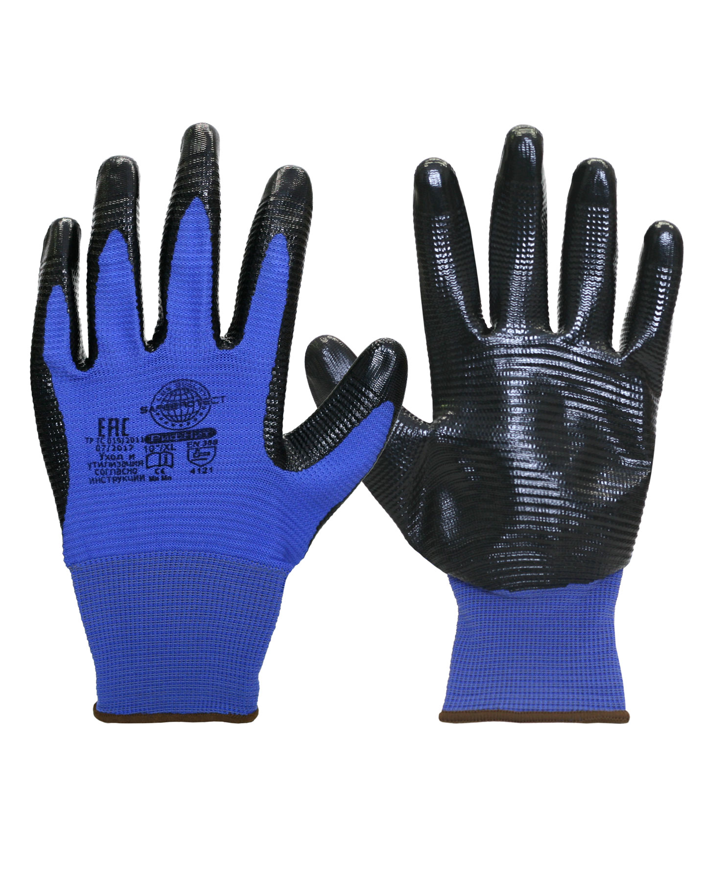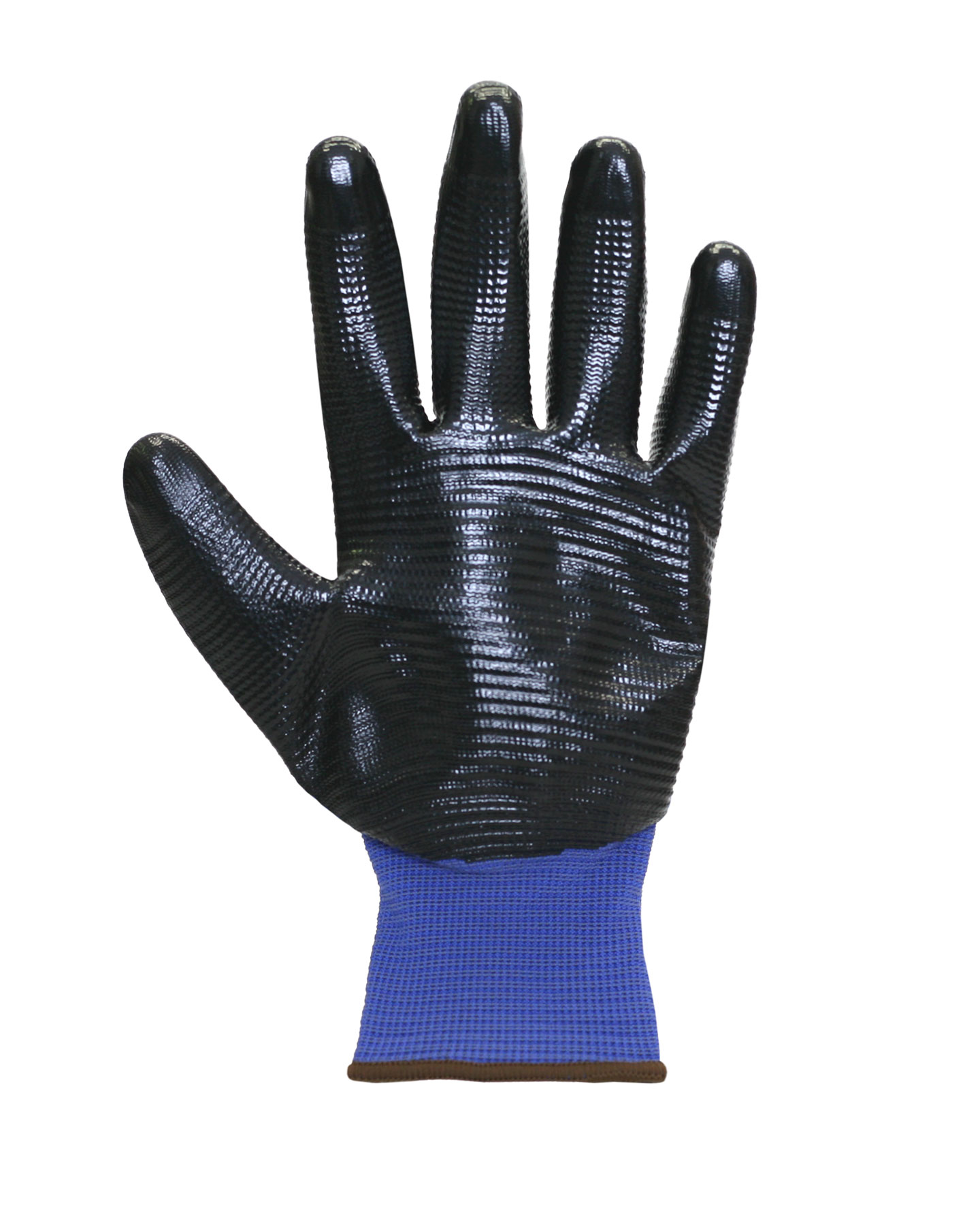 Перчатки из 100% нейлона, 13-го кл. вязки, цвет сеорый, рифленное нитриловое покрытие черного цвета. Отличная защита от истирания и разрыва. Повышенна ястойкость покрытия к маслам, нефтепродуктам, кислотам и щелочам. Отличны захват и сцепление, отличная воздухопроницаемость широкий диапазон покрытия.